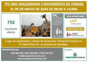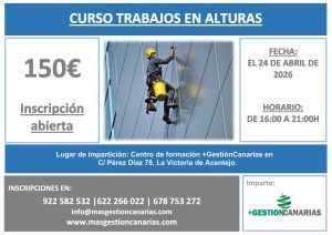 Fecha 24 de abril de 2026 de 16:00h a 21:00h. Lugar de impartición: Centro de formación +GestiónCanarias en C/ Pérez Díaz 78, La Victoria de